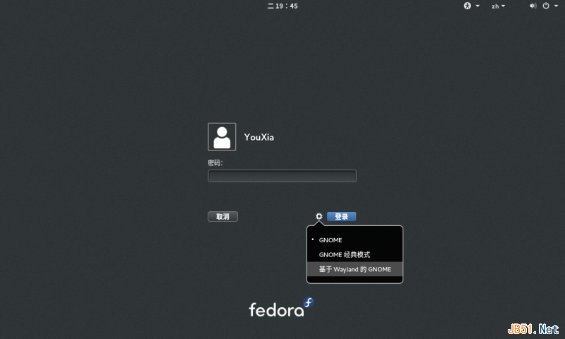 Fedora 21的第1大亮点就是可以使用Wayland了。据说Wayland图形效率要高于X Window,又据说Wayland取代X Window是大势所趋,但是目前我认为暂时时机尚不成熟。想试用的话,在登录界面选择,如下图: