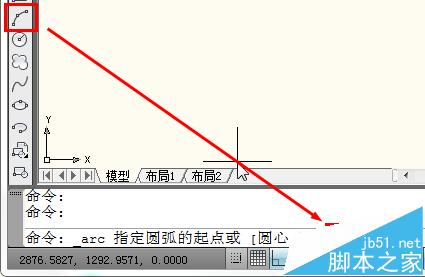 1、cad怎么画半圆?首先在cad工具栏中选择圆弧工具。