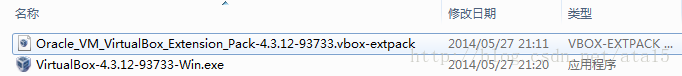 1、准备VirtualBox 相关安装程序如下(图2-1所示),运行“VirtualBox-4.3.12-93733-Win.exe”安装程序。