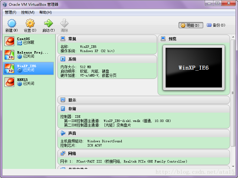 5、VirtualBox 管理器界面风格简单明了(如图2-5所示)。