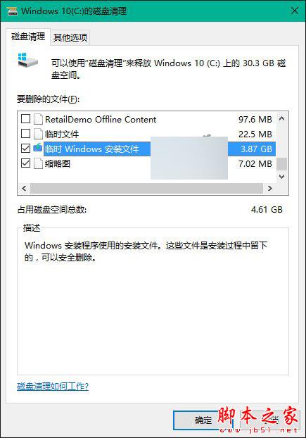 2、用户可以在“磁盘管理”中选择“清理系统文件”,然后选择“临时Windows安装文件”;