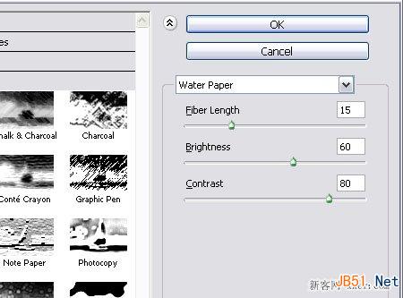 点击滤镜库>素描>水彩画纸,数值设置如图。