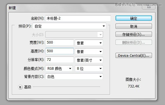 素材先上新建画布,我使用的是500*500,大家可以自定