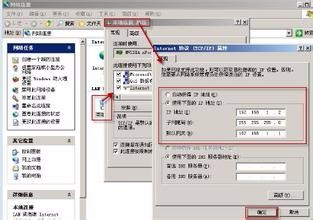 1、把两台机器的IP改为手动配置,(右击“网上邻居”选属性打开“网络连接”双击“本地连接”--属性--双击:Internet协议(TCP/IP))即可手动配置IP。如一个为192.168.1.10,另一个为192.168.1.20,子网掩码一般都是255.255.255.0