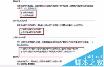 4、启用局域网网络共享设置,网络--网络和共享中心--高级共享设置,打开”家庭或工作“,在”网络发现“中选”启用网络发现“,在”文件和打印机共享“选启用,在”密码保护的共享“选关闭。