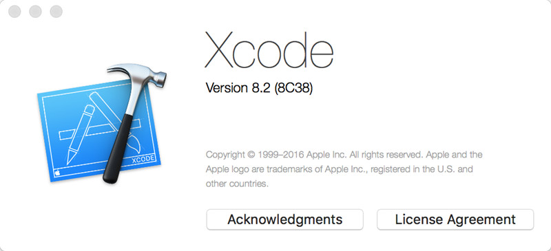 所以,要保证你的Xcode是当前最新的版本,下方就是我更新后的Xcode8.2版本。