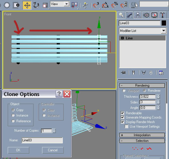 在当前窗口中创建3个复制线条,按住"shift",点击选择移动按钮即可。沿着x-axis移动,设定每一个线条的位置,这样就形成了图08中的效果。