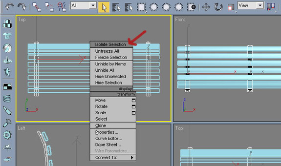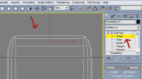 在左边的视窗中放大椅脚,然后点击顶点。现在稍微清理一下这个模型,删除一些节点以减少多边形。点击并拖拽直到选定好全部的三排线条,然后按键盘的删除键(图13)。