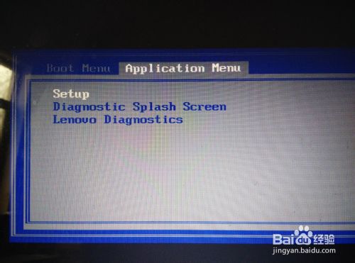 1、在重启电脑过程中,不断的按F12键,直至出现如下界面,按Tab键切换到“Application Menu”,然后选择Setup,按Enter。