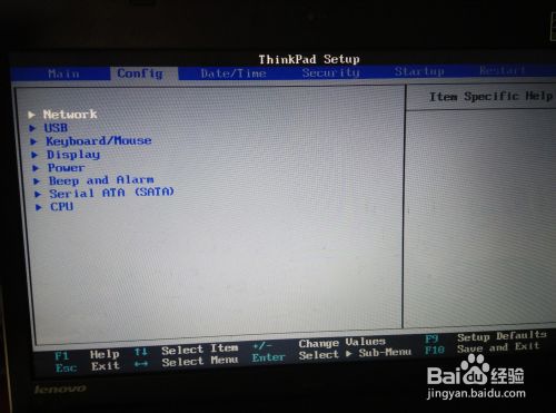 2、按方向键切换到Config,选择Network,然后按Enter。