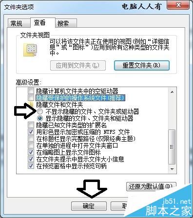 5、点选:不显示隐藏的文件、文件夹或驱动器→确定即可。