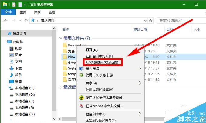 如果哪天不想在“快速访问”中看到New文件夹了,可以取消固定。