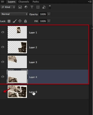 完成上述步骤后,将4个碎片图层复制一份,以做备份。