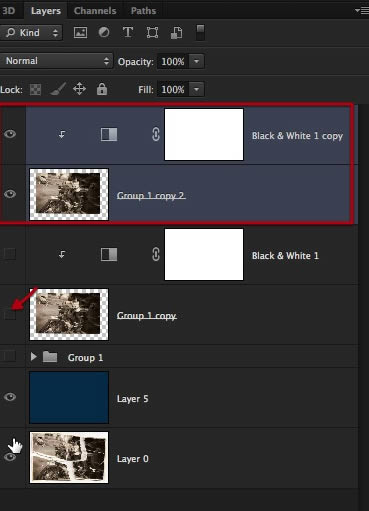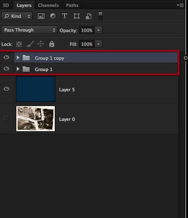 最后,将4个图层分成1组,4个副本也分成一组,然后选择副本图层组,右键->合并组。