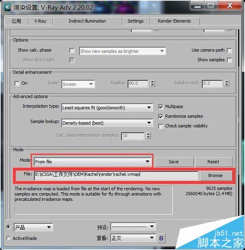 6、下面准备渲染大图了,在原来保存光子图的mode那一栏选from file,如下图,在下一栏那里找到刚才保存好的光子图。
