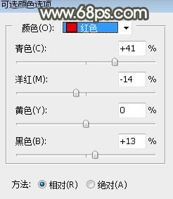 3、创建可选颜色调整图层,对红、黄、绿、青、蓝、白、黑进行调整,参数设置如图4 - 10,效果如图11。这一步把背景主色转为黄褐色。