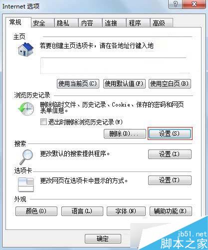 3、在常规选项卡中单击浏览历史记录中的设置按钮;