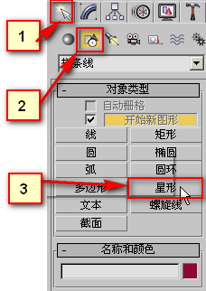 2、依次单击 面板中的 创建→图形→星形。在透视图中拖动创建一个星形。