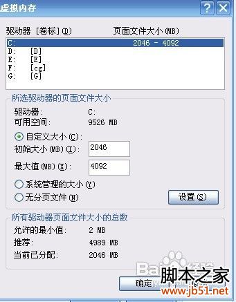 点击“我的电脑”,“属性”,“高级”,点击“设置”,在“性能选项”中点击“高级”标签中的“更改”,先关闭C盘的默认大小,再选择其他盘即可。