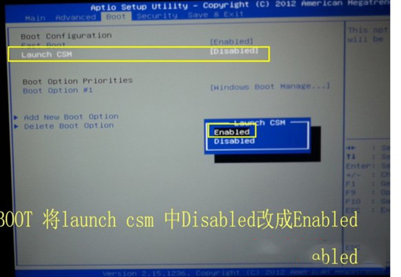 打开BOOT选项 然后开启CSM 为ENABLED