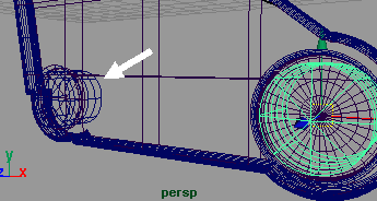 创建一个 nurbs 圆柱体 (spans 为 6), 旋转 90 度 , 并将它缩小移动到如 (fig 5) 所示,切换到侧视窗, 拉伸最右排的 cv 点并将其缩到看上去合成一点为止 .(pic 6) 你可以切换到前视窗当中放大来检查它,接着调整最右边的两排 cv 点 ( 包含我们所缩小的那一排 ) ,并将它们向左移动到如 (pic 7) 所示 , 调整好后复制这个曲面,并将复制出来的曲面隐藏起来,为什么 ? 向下看你就会明白的 ...