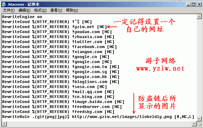 RewriteCond %{HTTP_REFERER} !yziw.net [NC]