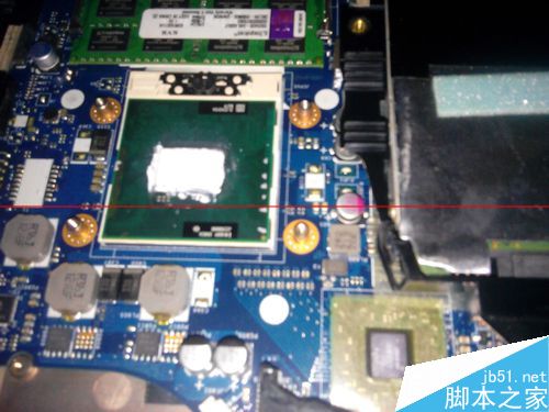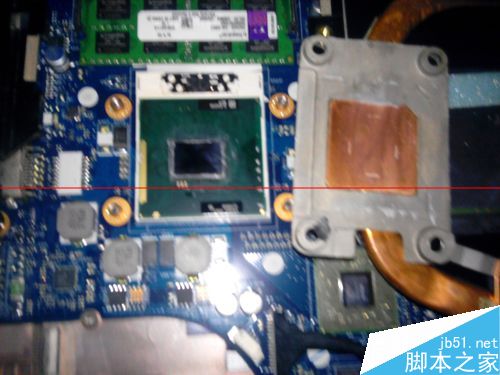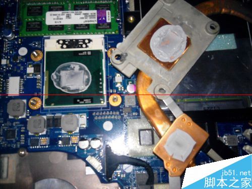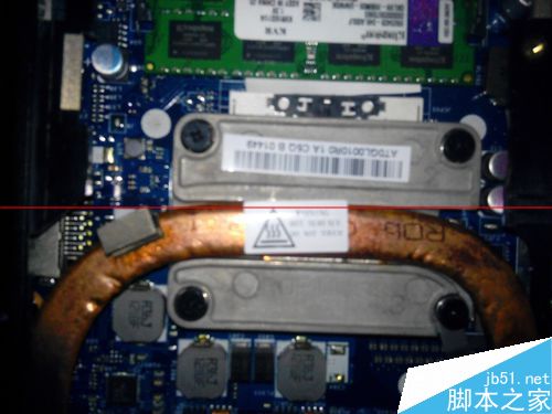 6、拆除散热铜管下CPU上的四个螺丝,拆开后可看到原本的散热硅脂,已经固化四溢了