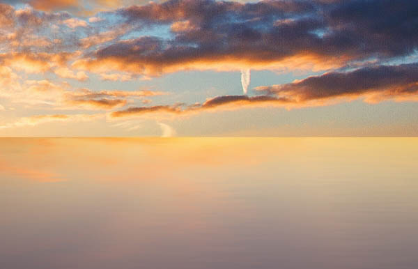 9、复制这一层,然后放在“天空”图层上方。通过选择垂直翻转编辑>变换>垂直翻转。向下移动覆盖白色部分。命名此层为“湖”。