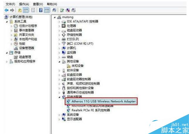 8、驱动成功安装后,设备管理器的网络适配器中将会正常显示此无线网卡设备,然后就可以搜索无线信号和连接,实现无线上网了。