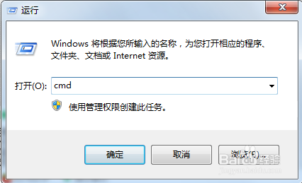 2、在弹出的运行对话框中输入【cmd】,点击确定,进入dos界面