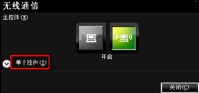 注意:因无线网卡有一个单独的开关,如果开启总开关后,无线还是无法使用,需要在上图的界面 点击“单个控件”按钮后,点击无线开关打开,如图: