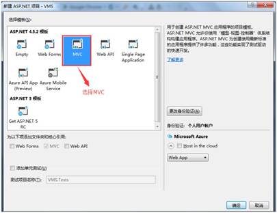 c. 在弹出的窗体上选择: MVC -> 确定 即可
