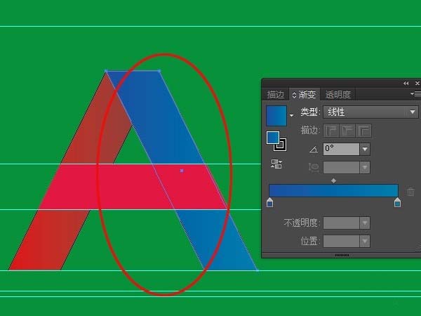 3、对字母的一条边进行渐变填充。