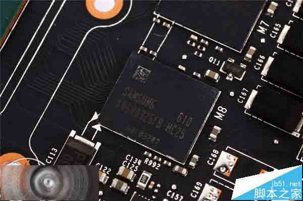 与GTX 1080显卡相比,GTX 1070显卡的一大变化就是不再用GDDR5X显存了,而是用回了传统的GDDR5显存,不过规格比之前GTX 900系列的更高,编号为K4G8032FB-HC25的三星显存频率是8Gbps,容量8Gb,速度略低于GDDR5X的10Gbps。