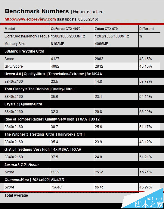 即便是面对非公版GTX 970显卡,Pascal的GTX 1070显卡也实在太强了,一如GTX 1080完虐GTX 980显卡那样,GTX 1070各方面也是完胜GTX 970显卡,1080p及4K分辨率下性能提升50%左右。