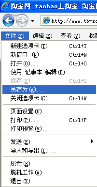 首先,我们进入他的网站。因为我们要做一个和他这个网站一模一样的网站,所以首先我们将他的页面保存在我们自己的电脑上。步骤是:点击IE浏览器上的“文件”、“另存为”,如下图所示: