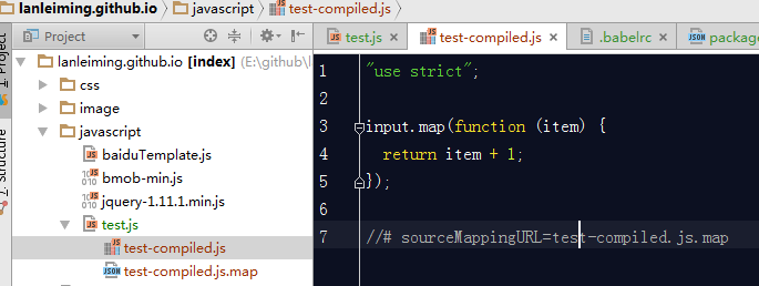 操作完成后,这时候修改JS代码,就会发现同步生成了一个test-compiled.js 文件,打开后发现代码和test.js代码一致。