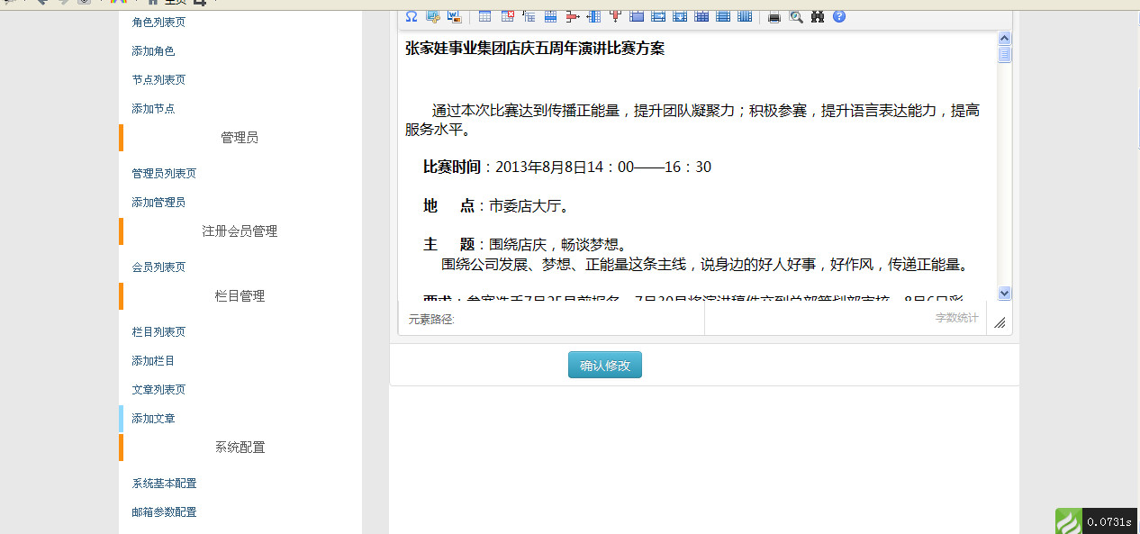 然后在前台模版显示数据的时候不仅要反转义还要去掉html实体化,{$article.content|htmlspecialchars_decode|stripslashes}这样就能正常显示了!