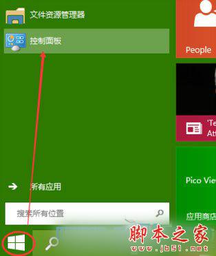 1、点击Win10系统的开始菜单,然后点击控制面板;