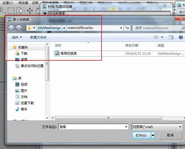 6、如果不更换此软件的话,材质库会一直在打开材质/贴图浏览器里。如果需要在其他电脑上使用得话,只需把保存好的材质库复制到相应的电脑,然后打开材质/贴图浏览器,选择打开材质库,导入材质库即可。