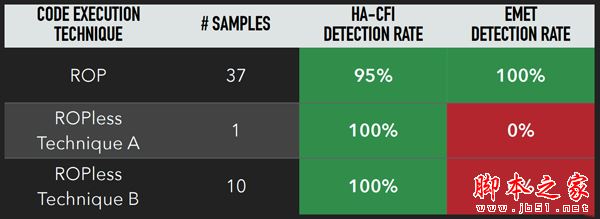 Cody Pierce等人选取了多个经典的CVE漏洞,与EMET进行了比较: