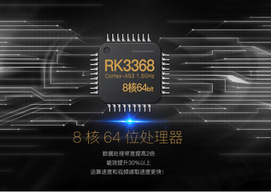 既然是旗舰配置,那么在硬配上肯定不含糊。去年九月WE30上市之时,率先业内采用RK3368 8核64位处理器,直接将电视盒子芯片从32位时代带入64位时代。而由此带来的最大效应,用WE30看影视内容更流畅、玩大型游戏更痛快了。