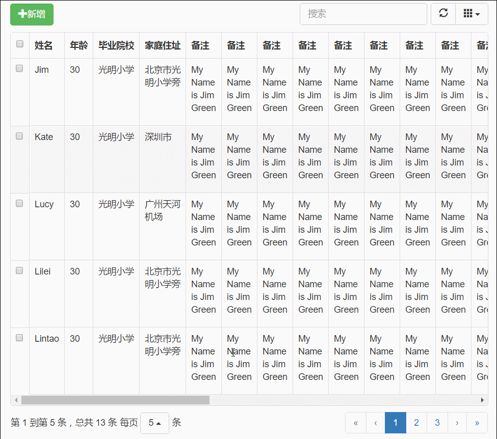 前言:一年前,博主分享过一篇关于bootstrapTable组件冻结列的解决方案 JS组件系列——Bootstrap Table 冻结列功能IE浏览器兼容性问题解决方案 ,通过该篇,确实可以实现bootstrapTable的冻结列效果,并且可以兼容ie浏览器。这一年的时间,不断有园友以及群里面的朋友问过我关于固定高度之后,冻结列页面效果不能对齐的问题,奈何博主太忙,一直没有抽空将这个问题优化。最近项目里面也不断有人提过这个bug,这下子不能再推了,必须要直面“惨淡的bug”,于是昨天利用一天的时间将原来的扩展做了一下修改,能够完美解决固定高度之后冻结列的问题,并且,博主还加了一些特性,比如右侧列的冻结、冻结列的选中等等,有需要的朋友可以捧个场。相信通过此篇,老板再也不用担心我的冻结列不能固定高度了~~