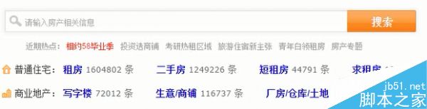 2、 把复杂的东西尽量分成两类,因为两类是最简单的,你分的越简单,你的内容质量会越高,对于权重的提升就越有利,你分的越复杂,用户选择起来就越困难,会无形中增加用户的选择成本。如下图,如果这个网站并没有划分出普通住宅和商业地产两大类,而是直接将7个小类混在一起,那么这个网站是肯定会被扣分的,为什么呢?很简单,分类太混乱,增加了用户的选择成本,但是如果划分了普通住宅和商业地产,就把这7条信息简单的分成了2类,这样用户在选择的时候就会更加的清晰明了,能有效节约用户的选择成本,提升用户体验。