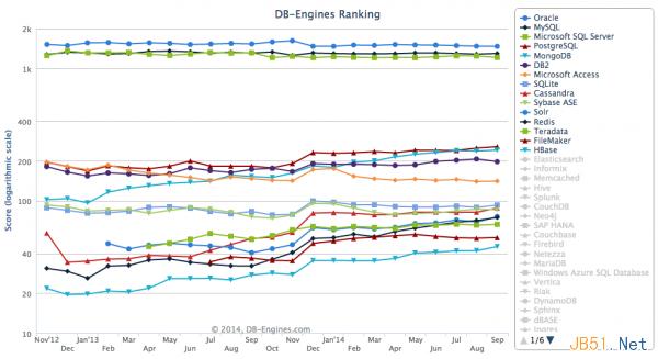 在Top 10之外还有很多知名的数据库,比如CouchDB (21)、Neo4j(22)、Riak(30)等 。同时我们也相信,随着各种各样新数据库的诞生,竞争将愈加激烈。