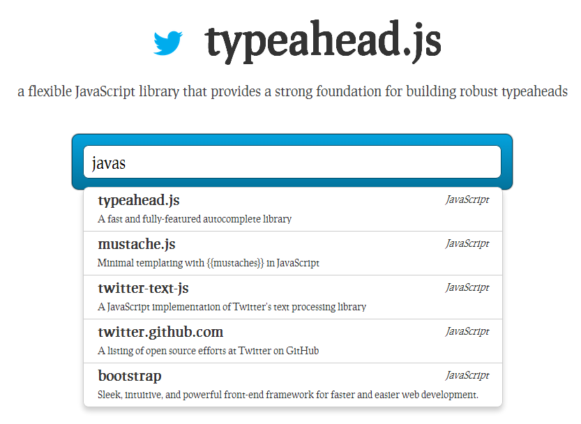 上图效果可以使用jQuery插件Typeahead.js来实现,这款jQuery插件来自于Twitter的一个新的项目,支持远程和本地的数据集。比较有特色的地方在于你可以将数据集使用本地存储(local storage)来保存在本地,有效的提高用户体验。同时也拥有很多远程数据集的处理选项,例如(请求频率,最大的并发请求数,等等)。