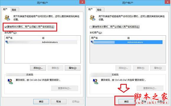 三、进入Win10用户账户窗口后,我们将【要使用本计算机,用户必须输入用户名和密码】前面的勾去掉,然后点击底部的“确定”,如下图所示。
