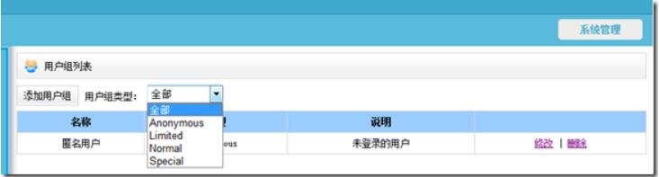 id是用户组类型,因为用户组类型是枚举类型,从0起始,所以这里浏览地址不带id参数时设为-1显示所有用户组,当如数id参数时显示指定类型的用户组。