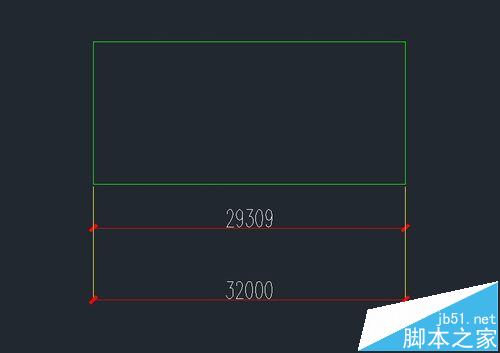 3、对矩形的“长”进行了标注,此标注的数字29309是真实的尺寸大小;
