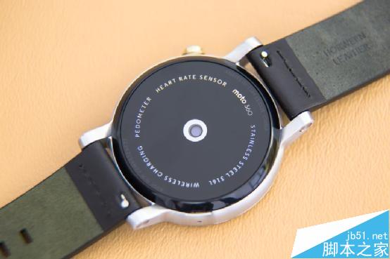 如其他产品一样,Moto 360也将心率传感器放置在了表身的后部,小型的镜头偶尔会发出绿色光线,用来读取用户心率。但是,这种类型的传感器有一定的缺陷,其理论上会利用绿色光线穿透皮肤,到达血液表面,然后产生反射并被传感器接收,进而读取心率数据,而此时如果手臂或手表处于移动状态中的话,相应的读数将会变得非常不精确。